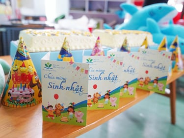 Tiệc sinh nhật hàng tháng, gửi tặng yêu thương và nụ cười cho các bé.